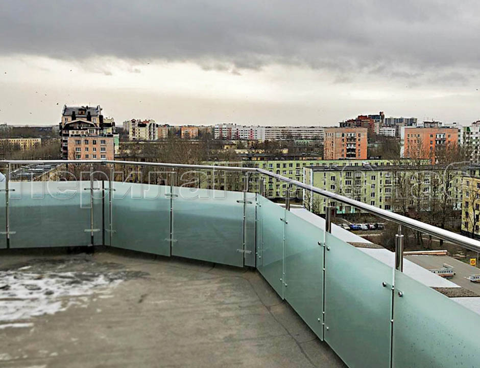 Цельностеклянное ограждение на зажимном алюминиевом профиле для крыльца