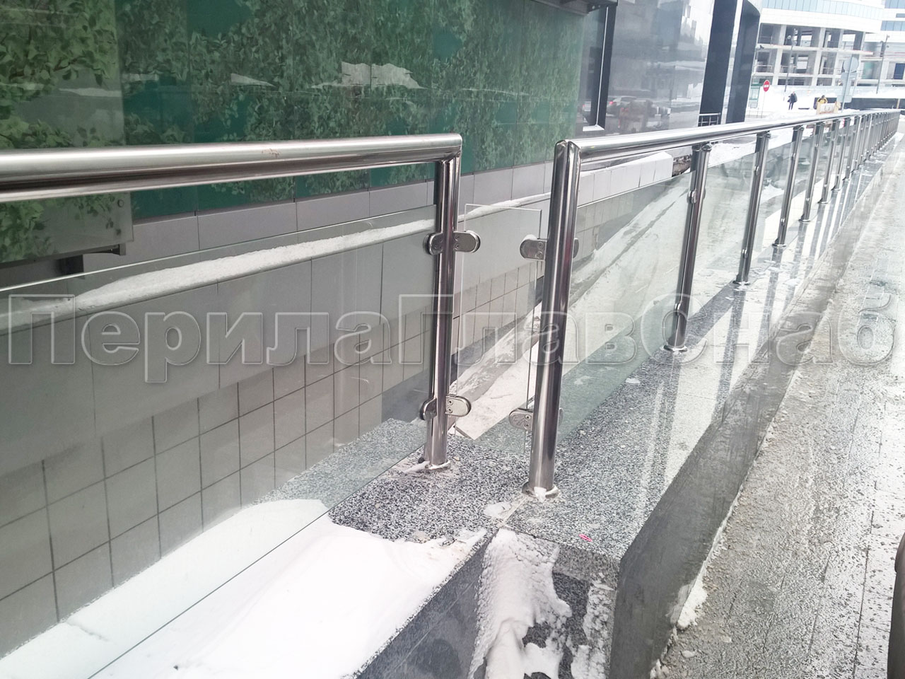 Ограждение для лестницы из нержавейки с зажимными стеклодержателями для крыльца