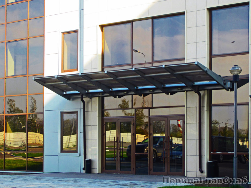 Консольный навес из поликарбоната выносной прямой треуголки в Алматы. Готовые проекты ПерилаГлавСнаб - фото 1 Консольный навес из поликарбоната выносной прямой треуголки в Алматы. Готовые проекты ПерилаГлавСнаб - фото 2