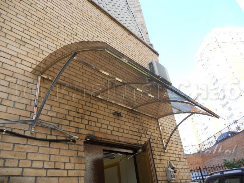 Козырек из поликарбоната на прямом каркасе