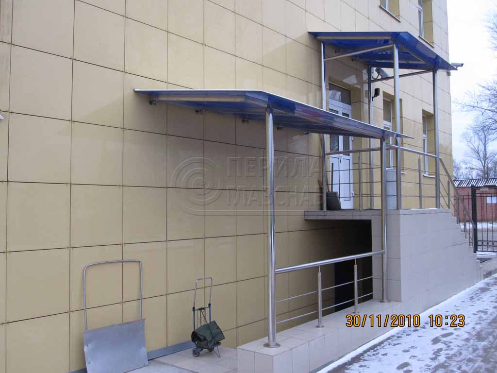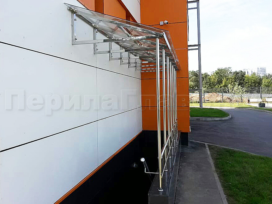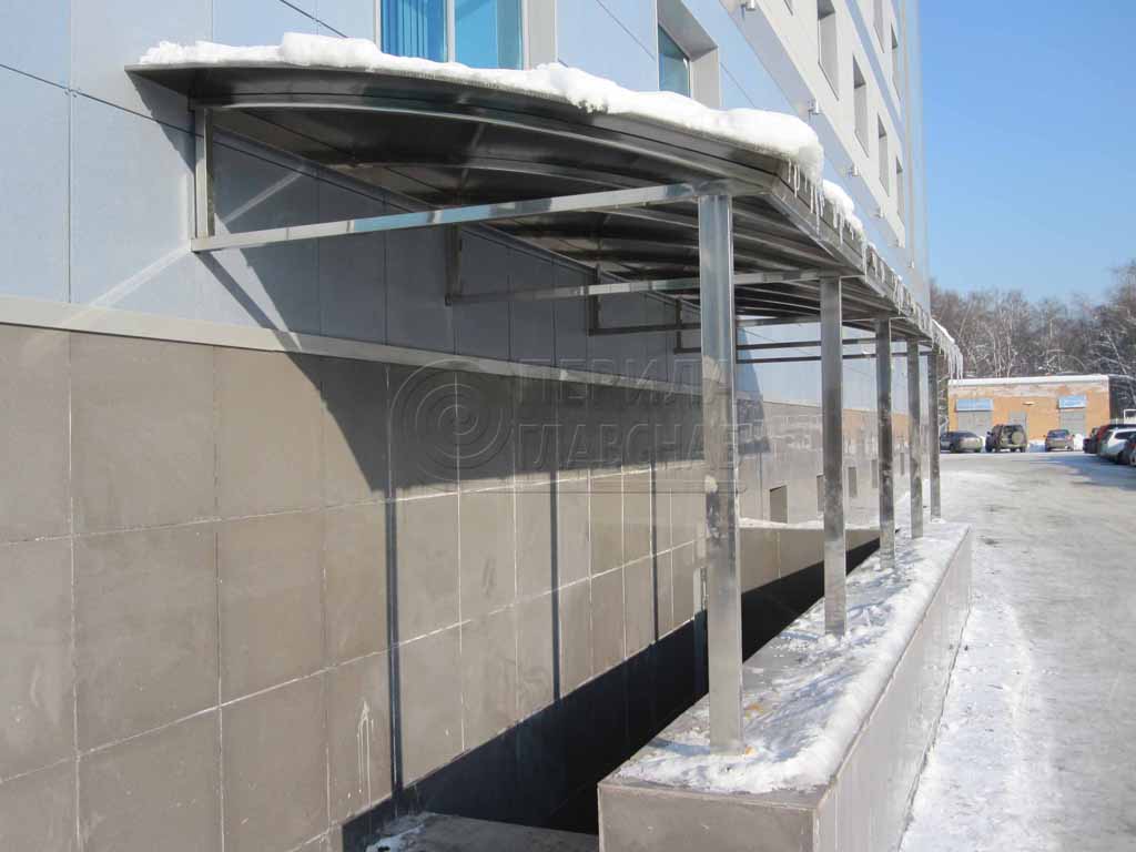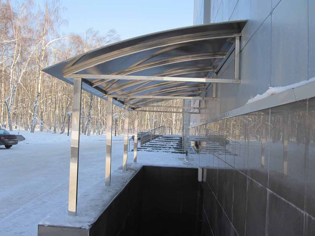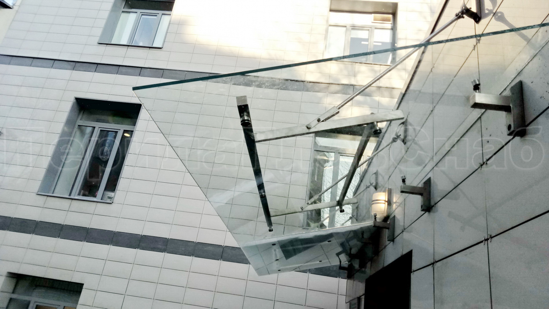 Стеклянный козырек на металлическом каркасе много лет будет сохранять свои функциональные и эстетические показатели. Элементы конструкций обладают предельной стойкостью к воздействию воды, низких и высоких температур, ультрафиолетовых лучей. Козырек из стекла на металлокаркасе не требует трудоемкого ухода, любые загрязнения легко удаляются моющими средствами.
