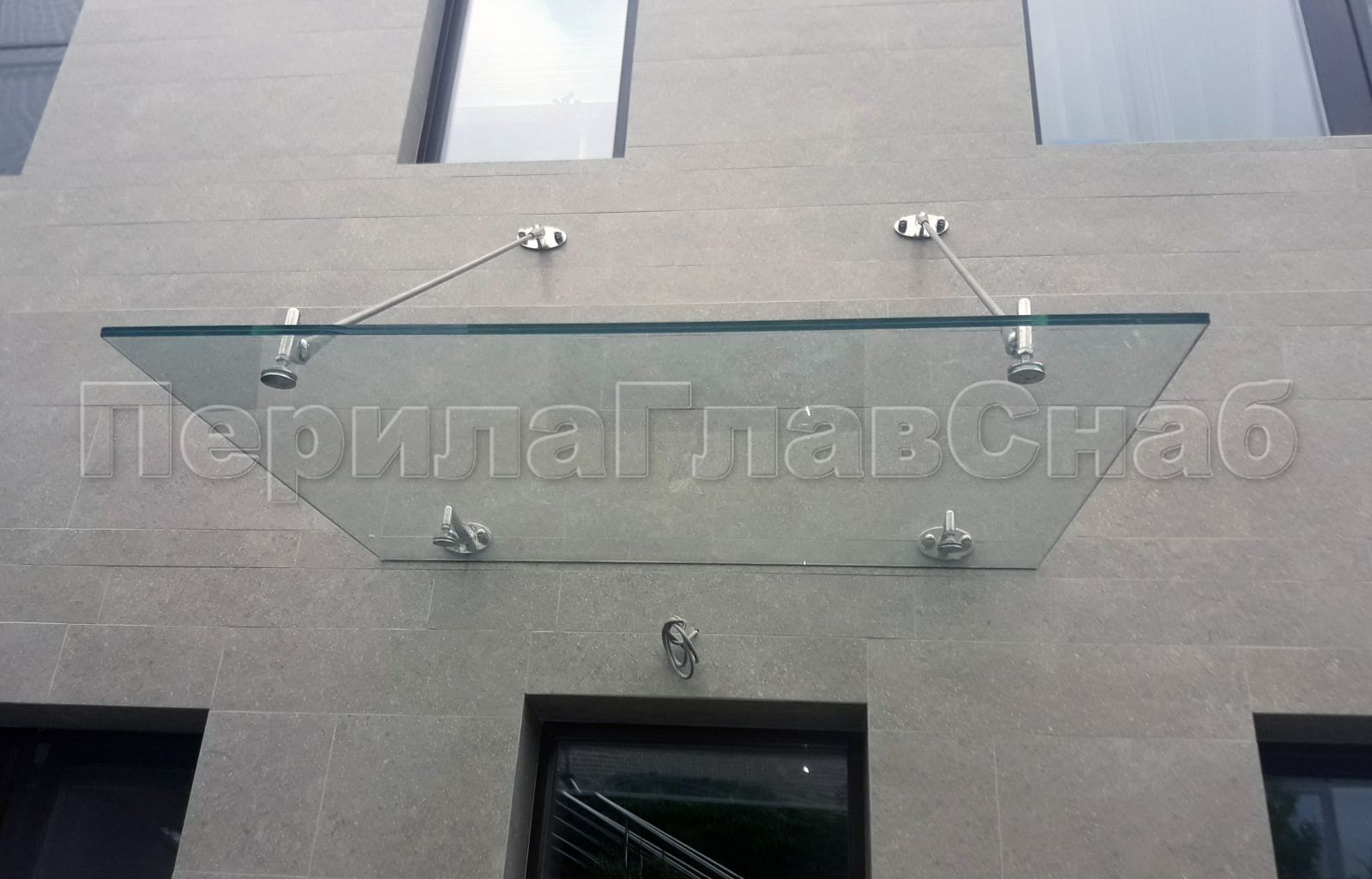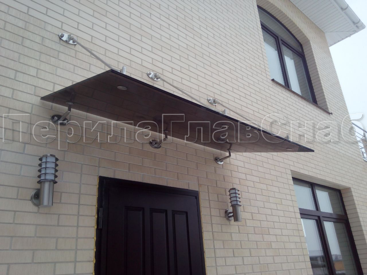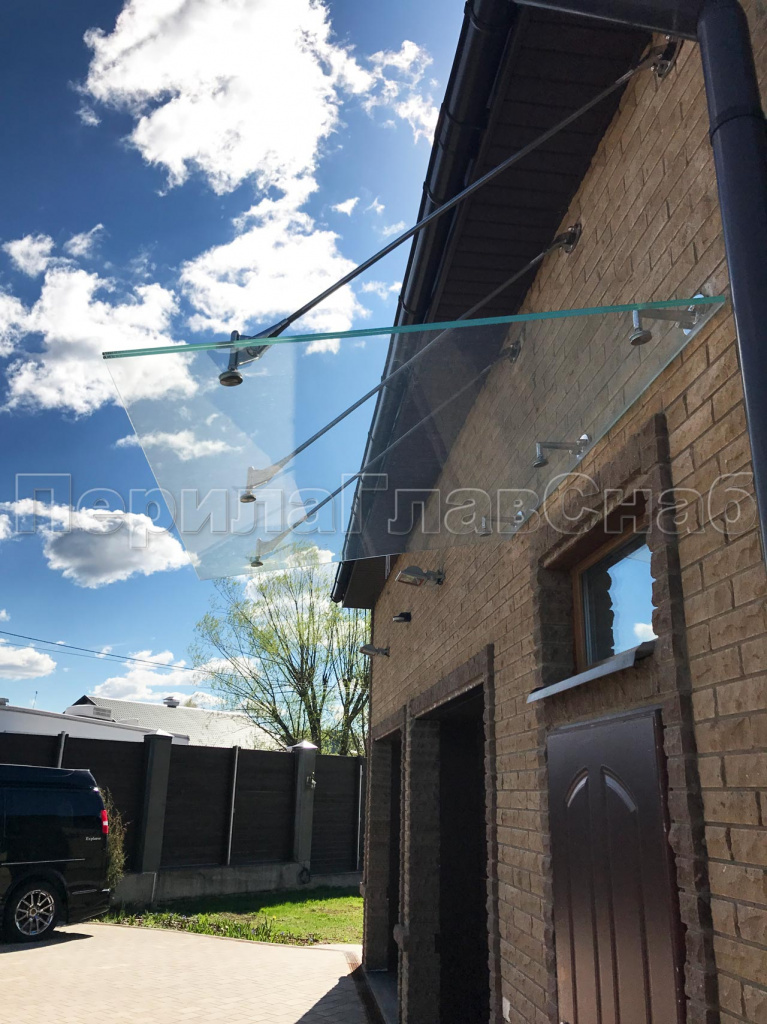 • козырек на подвесах выполняется из триплекса или каленого стекла, поэтому такая стеклоконструкция является полностью безопасной и очень прочной. Козырек на подвесах, выполненный из триплекса, прослужит долгое время, сохраняя свой изначальный внешний вид.