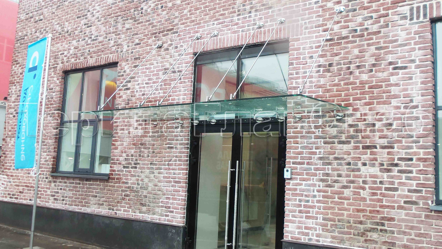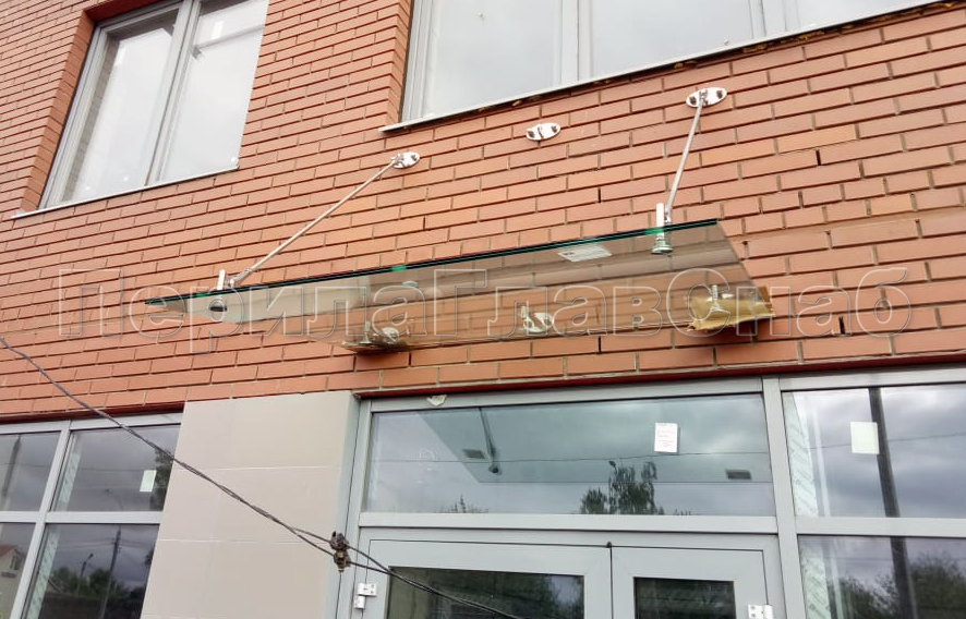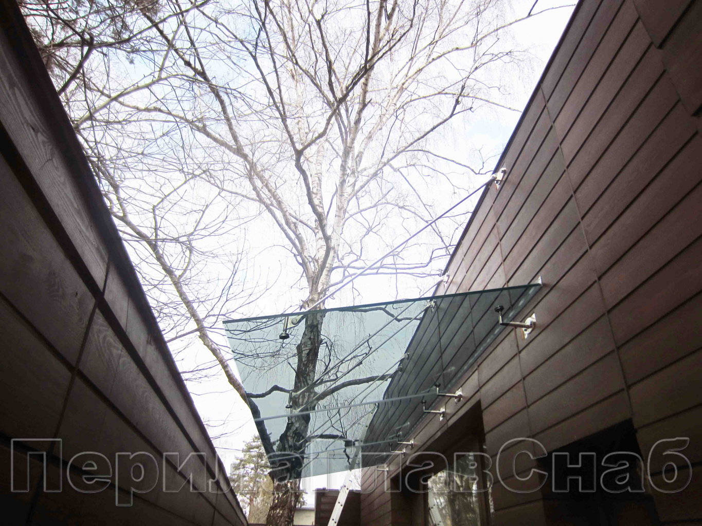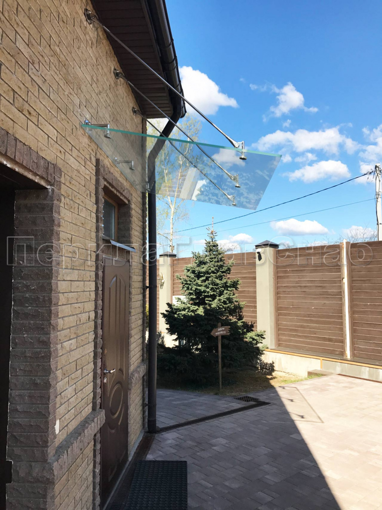• козырек на подвесах выполняется из триплекса или каленого стекла, поэтому такая стеклоконструкция является полностью безопасной и очень прочной. Козырек на подвесах, выполненный из триплекса, прослужит долгое время, сохраняя свой изначальный внешний вид.
