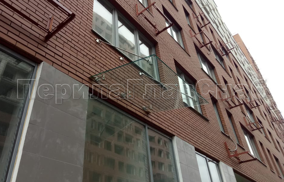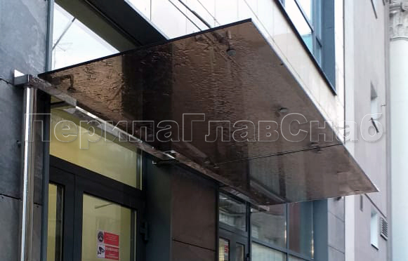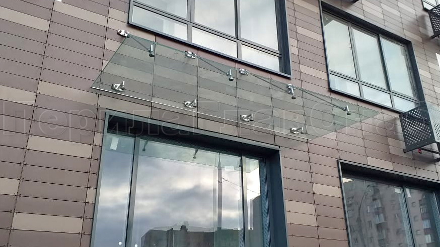 • долговечность — козырьки, выполненные из стекла обладают устойчивостью к влиянию низких и высоких температур, динамической нагрузке ветра и давлению, оказываемому скоплением наледи и/или снега. Они не подвержены окислению;