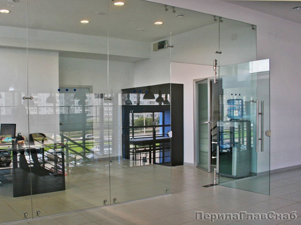 Бескаркасные стеклянные перегородки устанавливают в торговые центры, офисы, магазины и другие общественные здания, частные интерьеры.